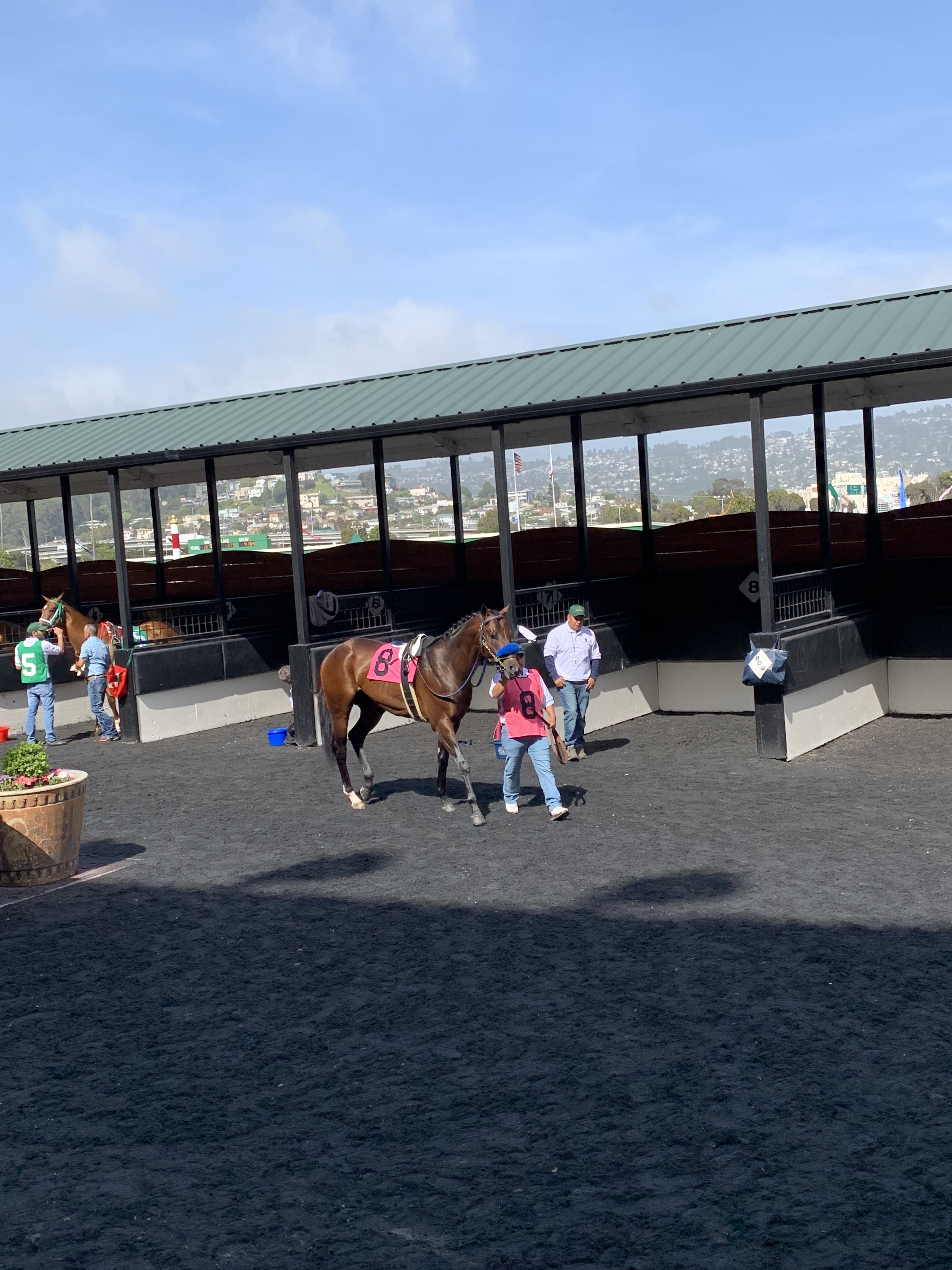 Grecian Fire in the paddock prior to the 2019 San Francisco Mile